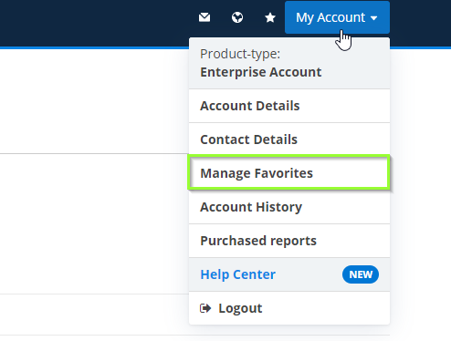 Manage favorites under the my account section of the menu bar